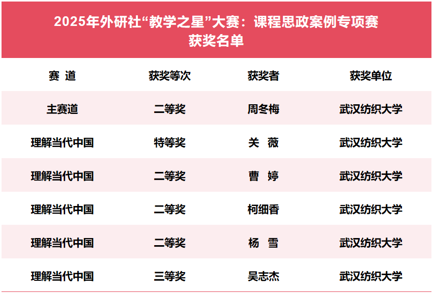 此次竞赛中,我院员工积极参与、精心备赛,最终斩获特等奖 1 项、二等奖 4 项、三等奖 1 项。下一步,我院将以此次获奖为契机,推广优秀教学案例经验,持续深化外语课程思政改革,为培养高素质国际化人才筑牢教学根基。