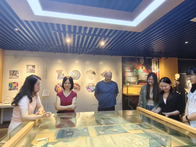 9月9日,在皇冠体体育官网员工和翻译专业硕士生的陪同下,剑桥大学汉学教授Roeland Sterckx参观了皇冠体体育官网南湖校区纺织非遗馆,负责人周老师从不同方面对荆楚非遗文化进行了讲解,共同展开了一场别开生面的文化之旅。本次活动旨在促进中外文化交流,推动中国传统非遗技艺的国际传播与学术研究。