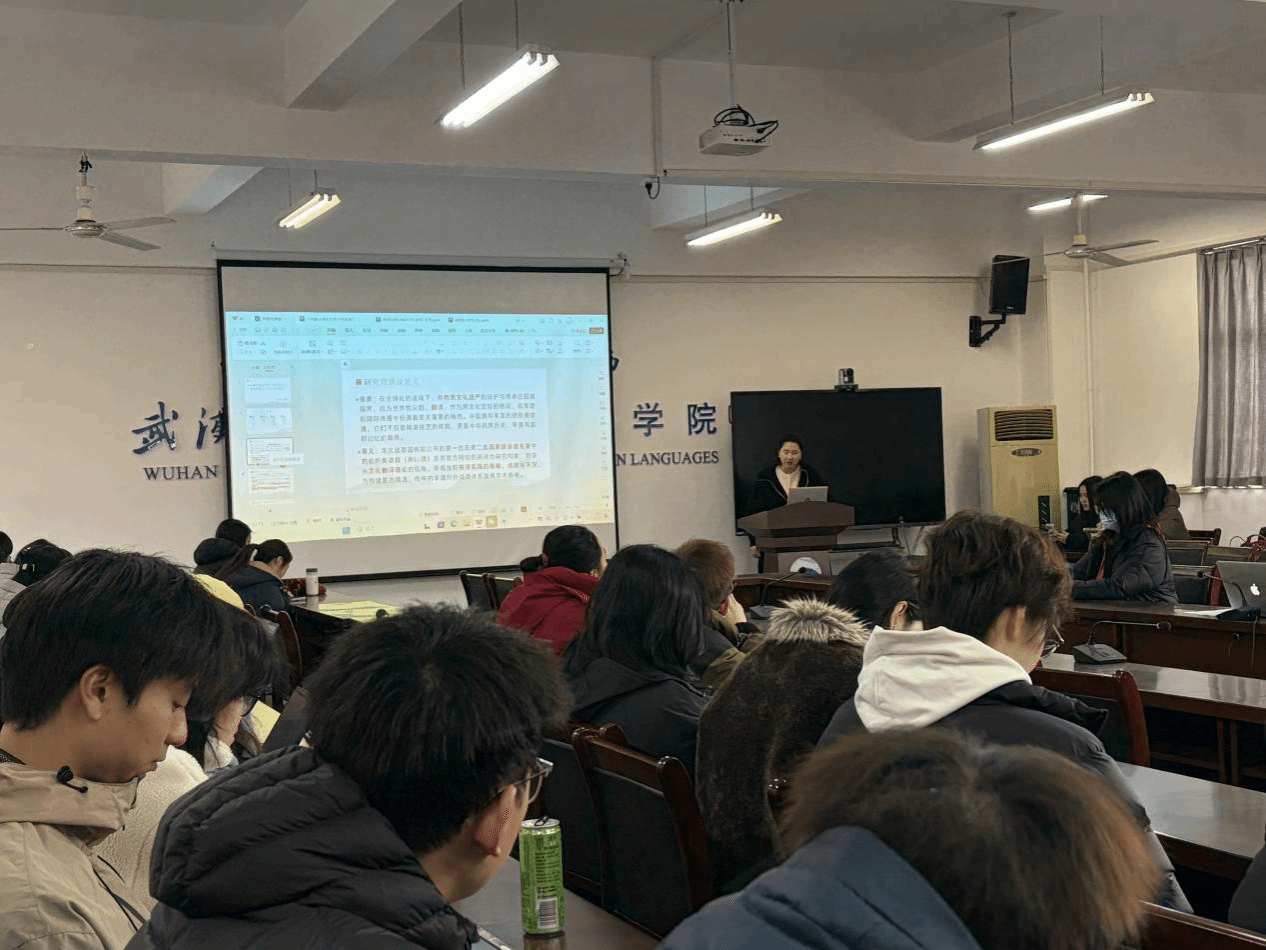 12月30日,皇冠体体育官网第104期“经纬译学”研究生论坛在崇文楼303会议室举行。本期论坛特邀华敏、吴凤竹两位老师共同担任点评嘉宾,2025级MTI研究生姚芊芊担任员工主持,2024级和2025级研究生共同参加了此次论坛活动。