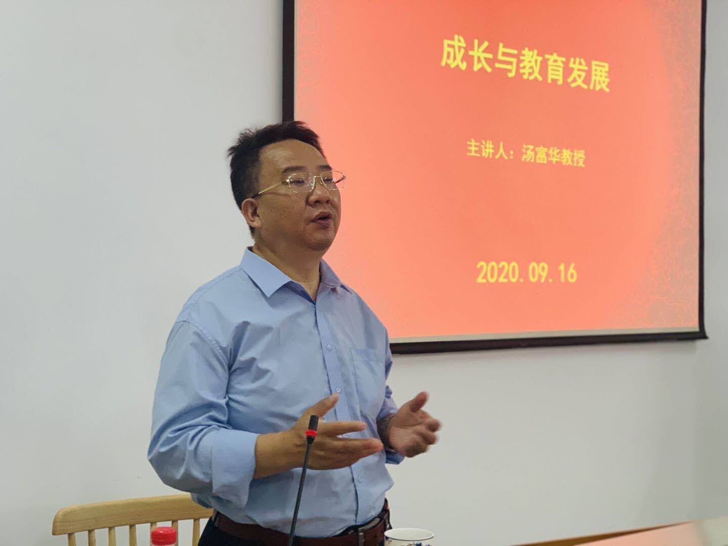 9月16日上午,我院硕士生导师汤富华教授应邀在MTI研修室04-308教室为2020级MTI研究生新生做了题为“成长与发展”的精彩讲座,为刚刚入学的新生们上了开学第一课。讲座由副院长柯群胜教授主持,全体2020级MTI研究生认真聆听了讲座。