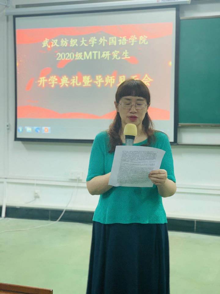 MTI教育中心主任刘珊带领同学们一起学习了翻译硕士研究生手册,重点介绍了毕业要求清单和研究生日历,帮助新生明确今后两年的目标。她提出,我校翻译硕士研究生应树立四大目标,即夯实双语基础,拓宽以纺织服装知识为重点的百科知识,以通过翻译资格考试为契机提高翻译水平,掌握翻译技术;处理好四大关系,即翻译实践与翻译研究的关系,课程学习与翻译实践的关系,机器翻译与人工翻译的关系,自己与导师的关系。她希望大家能发扬抗疫精神,只争朝夕,锐意进取。