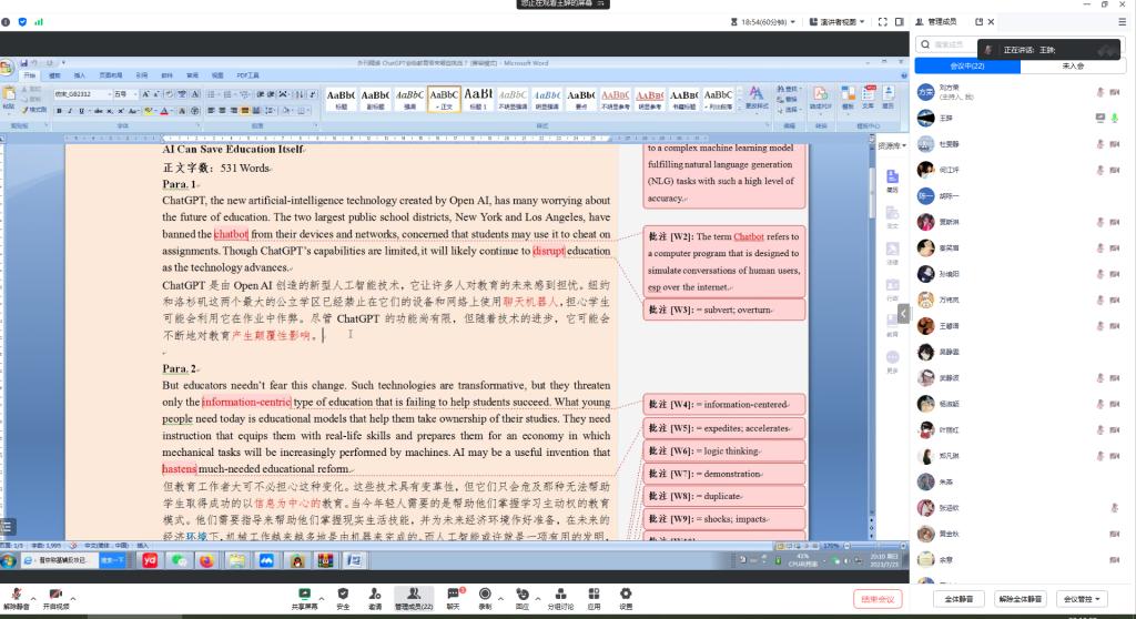 7月23日,皇冠体体育官网MTI教育中心通过腾讯会议成功举办了22级MTI研究生CATTI考试备战暑期第一次点评会,进行点评的是王辞老师。点评会由刘方荣副院长主持。
