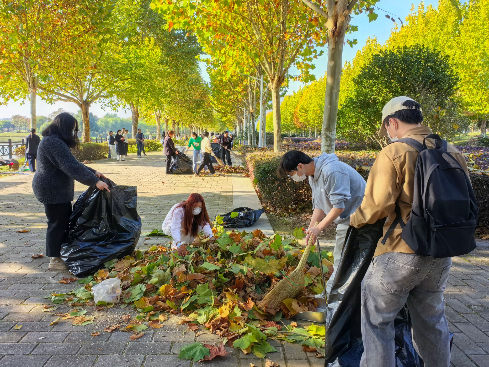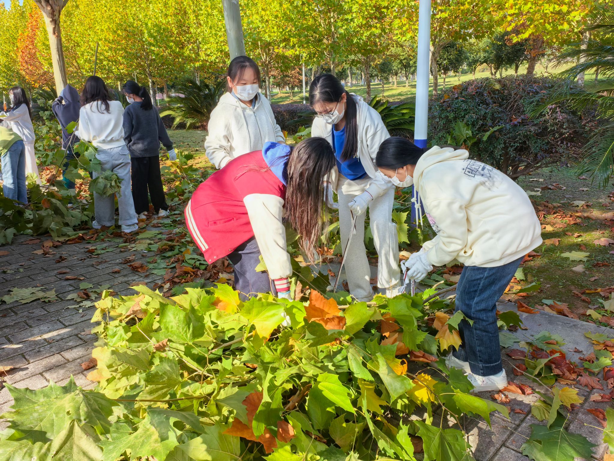 活动开始前,后勤保障处的专业老师对同学们进行了简单的劳动安全与技能指导。随后,在皇冠体体育官网领导与老师的带领下,同学们分为若干小组,手持清洁工具,有序奔赴指定区域。深秋的校园落叶纷飞,枯枝堆积,同学们发扬不怕脏、不怕累的精神,细致地清理散落在道路、草坪及绿化带中的落叶与断枝。大家分工协作,配合默契,有的负责清扫归拢,有的负责装袋转运,现场一派热火朝天的劳动景象。经过师生们的共同努力,责任区域内的环境卫生焕然一新,校园秋景更显整洁靓丽。