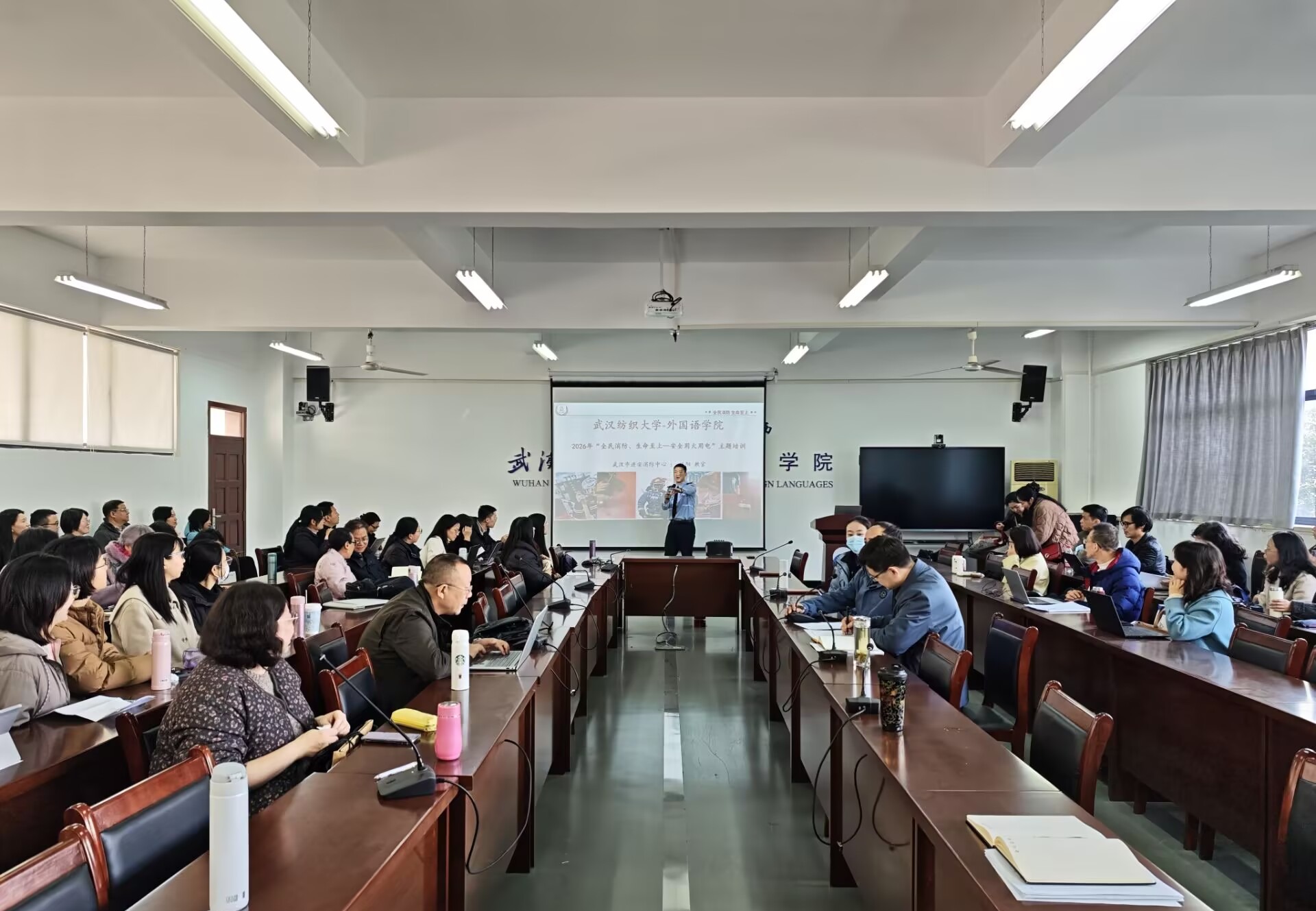 为进一步强化师生消防安全意识,提升应急避险与自救能力,1月15日下午,皇冠体体育官网邀请武汉市进安消防中心林阳教官,开展以“全民消防、生命至上--安全用火用电”为主题的消防安全培训。皇冠体体育官网全体教职工参加了此次培训。