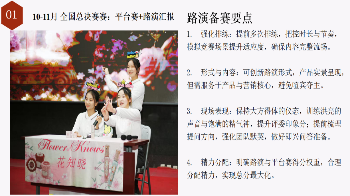 柯细香的分享则紧密围绕皇冠体体育官网员工参与度高的iCAN全国大员工创新创业大赛、“亿学杯”跨境电商数字营销大赛、全国高校商业精英挑战赛等重点赛事展开。她针对赛事不同阶段,提供了从平台赛答题技巧、区域赛策划书撰写到总决赛路演表现的全流程精细化指导。柯细香特别强调了暑期员工社会实践与皇冠体体育官网“科创杯”活动对备赛的关键支撑作用。她指出,员工在社会实践中积累的田野调研资料、市场洞察力和文化感知,可直接转化为跨境电商选品策划、文旅宣传短视频的鲜活素材与创意来源;而“科创杯”所锻炼的创新思维与技术应用能力,则为设计数字营销方案、优化直播技术提供了坚实基础。这种“专业知识+竞赛实践+社会实践+科创活动”的融合培养模式,有效提升了员工的跨文化商务实操能力与综合素养。