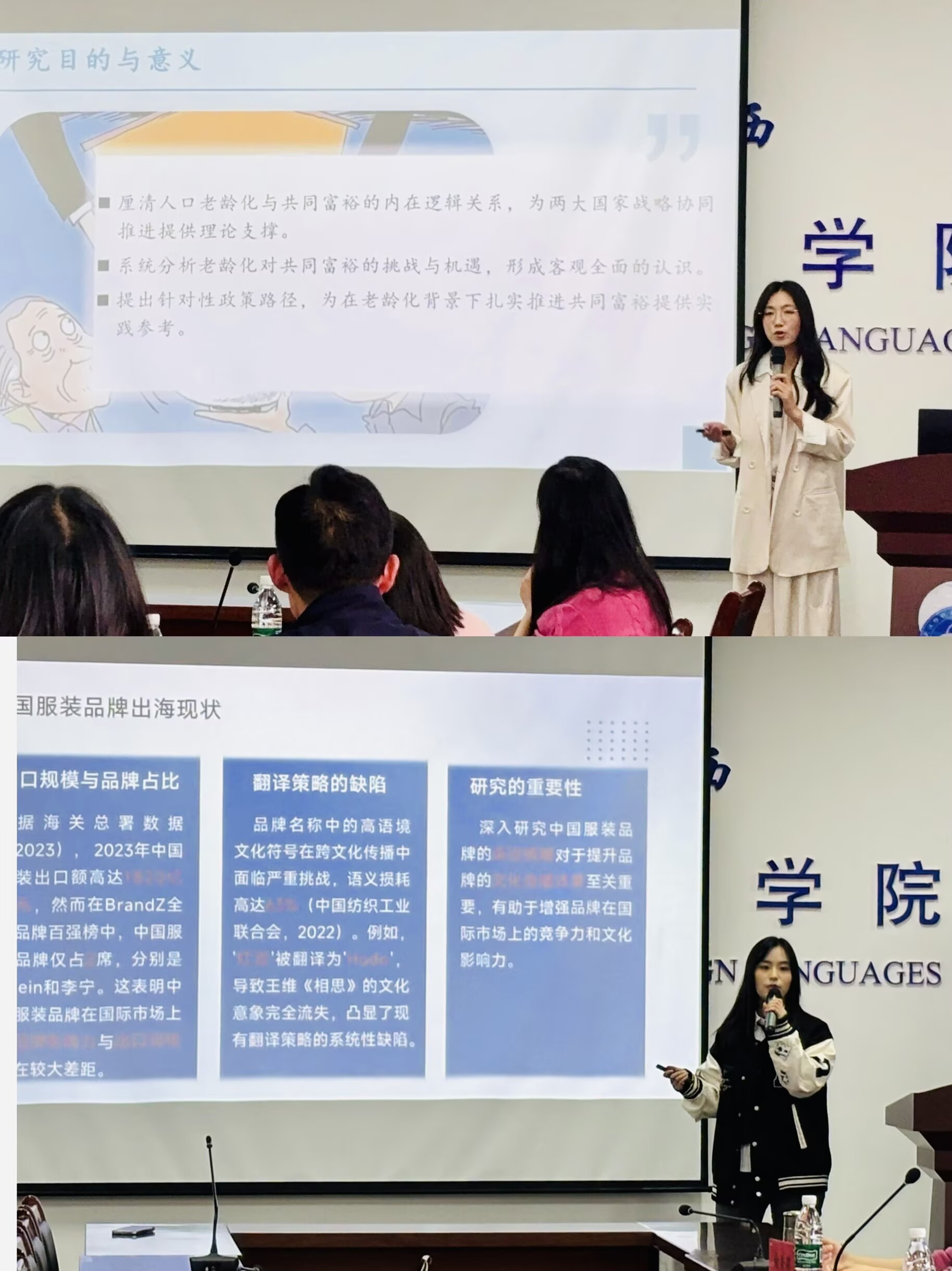 本次论坛上,来自管理、经济、外语及马克思主义皇冠体体育官网的20名研究生依次登台,从研究背景、理论框架、实证分析到结论展望,围绕各自研究领域分享了最新研究成果。研究成果主题多元,既有聚焦数字经济与绿色发展的研究,如人工智能应用与企业污染治理、数字普惠金融与农业绿色技术创新、智慧供应链与企业可持续发展等经管类热点议题;也有立足文化传播与语言研究的探索,如中国服装品牌名称英译策略等文化外译类成果;更有扎根中国实践的理论思考,涵盖乡村振兴、共同富裕、基层党建、人口老龄化等马克思主义理论相关课题,充分展现了我校人文社科领域研究生扎实的学术功底、开阔的研究视野与创新的思维能力。