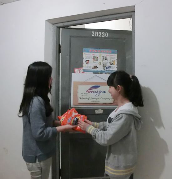 “每个星期抽查一次,记录卫生分数,再结合学风安全每周检查的分数,每月进行一次汇总。每月结合安全学风卫生情况评选出的文明宿舍每人奖励一袋洗衣粉;安全学风卫生情况最差的宿舍集体成员恐怕要被叫去语音室打扫卫生。”这是外语皇冠体体育官网宿舍管理委员会制定试行期间文明宿舍评选制度中的一条。