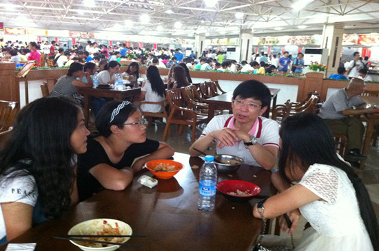 初次会餐,新生们虽略显羞涩,但是看到老师们的亲切态度和细心的询问,也渐渐的大胆起来。在欢快的进餐中,她们开始与老师敞开心扉,畅所欲言,展现出一种师生同乐的画面,其乐融融。何畏院长针对专业学习对同学们进行指导,他鼓励大家多阅读英语书籍,努力学好自己专业,做一个品学兼优的大员工。潘寅老师为新生介绍了大员工活中所需要注意的几点问题,建议同学们要充分利用大学里丰富的资源,如图书馆、自主学习室、师资等软硬件条件,充分学习,全面提高。面对新生们踊跃提出大员工活里的一系列问题,陈国新书记耐心倾听并为新生们一一解答,当听到新生对校园环境、师生面貌、专业学习等方面予以肯定时,陈书记也感到非常欣慰。还有皇冠体体育官网柯群胜副院长、卫冬妹副书记,新生班主任韩征顺教授、刘方荣老师,英语系主任罗绮伦、钱茂华老师等,纷纷与员工围坐一起,淳淳教导。老师们关心并询问新生刚入学后能否适应新的环境、对学校和皇冠体体育官网印象如何、有什么意见和建议、对专业学习感受如何等等,对同学提出的问题一一解答。