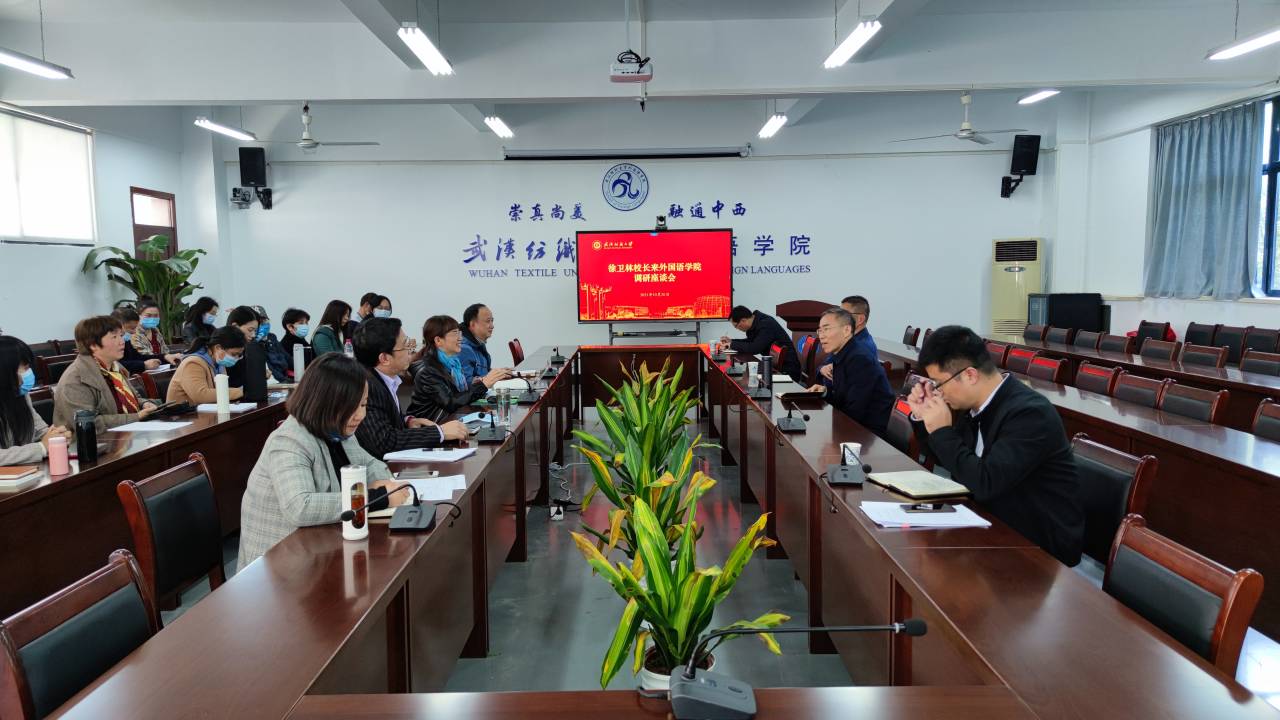 在听取皇冠体体育官网汇报后,徐卫林着眼学校整体发展、围绕皇冠体体育官网工作突破的重难点逐一进行了分析和指导。他指出,一要优化本科公共英语教学,立足人才的成长和出路,抓住学风建设这个关键,以务实举措促进员工考研和四六级通过率提升,为员工的继续深造打好基础;二要着力抓好研究生培养,在继续做精做好学术论坛这个平台的基础上,营造浓厚学术氛围,注重培养高质量的研究生;三要紧密结合校本特色,进一步凝练科研项目的研究方向,鼓励员工积极参与国家社科基金和教育部项目的申报;四要进一步加强学科建设,多种渠道引进高水平人才,强化教学科研团队建设,带动本皇冠体体育官网老师在职称、项目和学术等方面的发展进步。