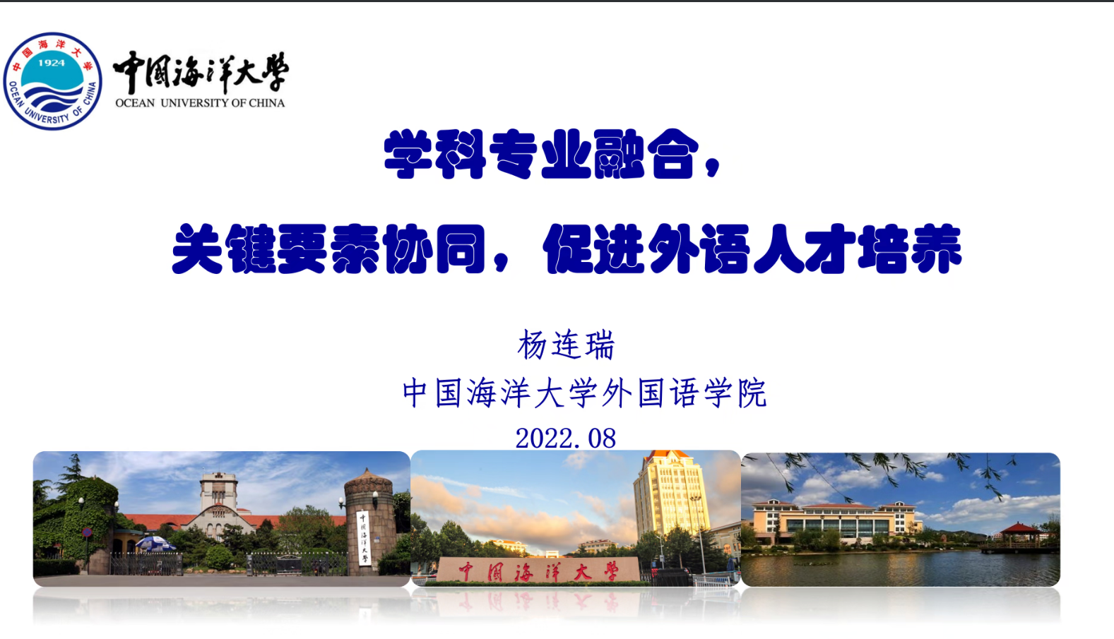 新学期伊始,皇冠体体育官网开展了本学期第一场学术活动。8月30日晚上7点,中国海洋大学皇冠体体育官网院长﹑博士生导师杨连瑞教授应邀在云端作了题为“融合学科专业,协同关键要素,促进外语人才培养”的学术讲座。此次讲座是皇冠体体育官网学科专业融合系列论坛的首场,讲座由院长谭燕保教授主持,皇冠体体育官网全体员工在线参加了此次讲座。