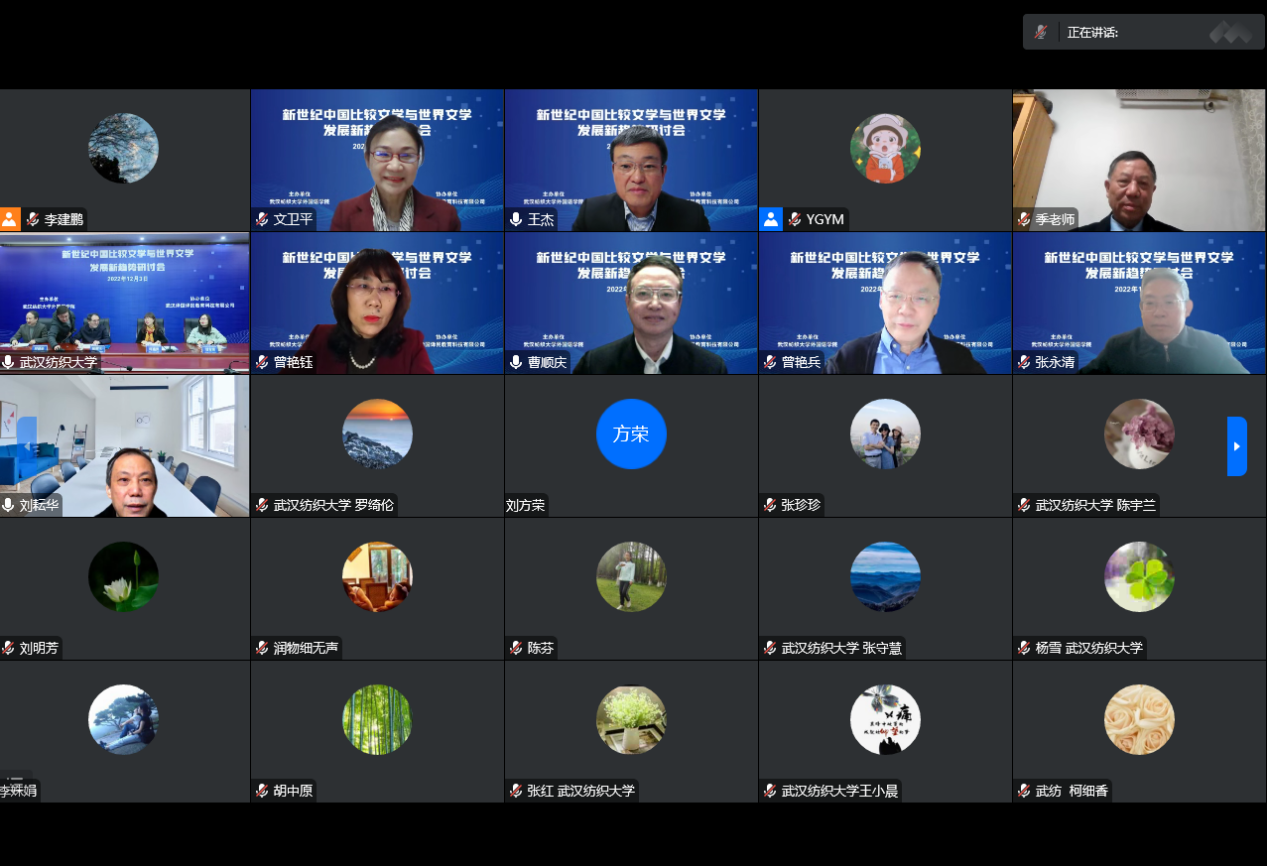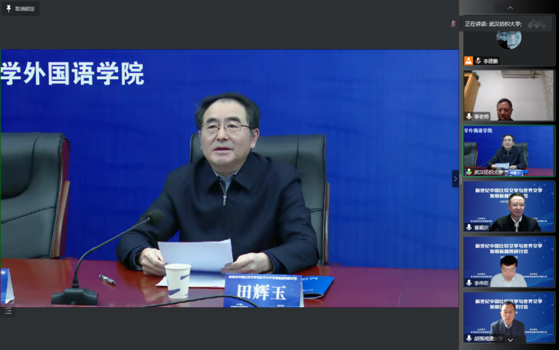 12月3日,由我校皇冠体体育官网主办的“新世纪中国比较文学与世界文学发展新趋势研讨会”在线举行。来自复旦大学、中国人民大学、浙江大学、武汉大学、四川大学﹑湖南师范大学、湘潭大学及河南大学的相关学科专家和学者就多学科融合背景下的比较文学跨学科研究,中国比较文学研究的新走向﹑新特点,欧美各国现当代重要作家、作品研究以及马克思主义文论与中外文论比较研究等议题展开了广泛而深入的探讨。来自全国众多高校的员工及研究生参加了此次研讨会,校党委书记田辉玉教授出席会议并致辞。大会由湘潭大学季水河教授和我校谭燕保教授共同主持。