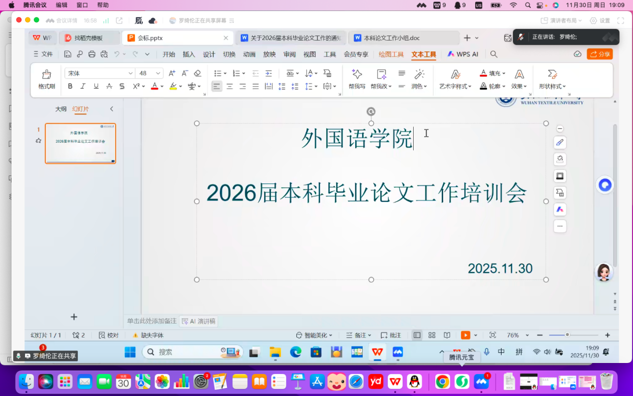 11月30日晚7点,皇冠体体育官网通过腾讯会议平台举行了2026届本科毕业论文工作培训会。皇冠体体育官网26届本科毕业论文指导员工参加此次会议。