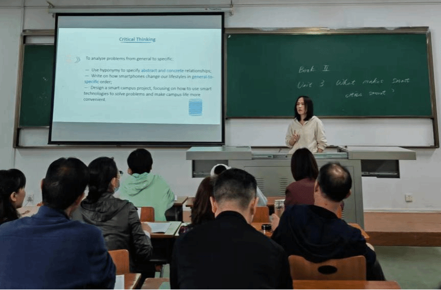 4月11日,大学英语第二教学部全体员工在崇文楼04-504教室举行了期中教学研讨会和教学观摩活动。本学期教学进度将近完成过半,大家就教学中出现的情况进行了分析,如何将课程思政元素润物细无声地融入课堂教学,引领员工树立正确的核心价值观,激发员工的学习积极性和刻苦钻研的奋斗精神。老师们对人工智能AI如何赋能大学英语教学展开了热烈的讨论。大学员工要及时更新自身的知识体系结构,加强对英语教学的创新研究,以人工智能技术为依托构建全新的教学模式与方法,充分发挥人工智能AI对英语教学的推动作用,实现授课、布置和批阅作业的智能化,通过对员工作业精准的数据分析,掌握员工的学习进度、水平与能力,为教学提供有针对性的数据支撑,为员工提供良好的个性化学习体验。