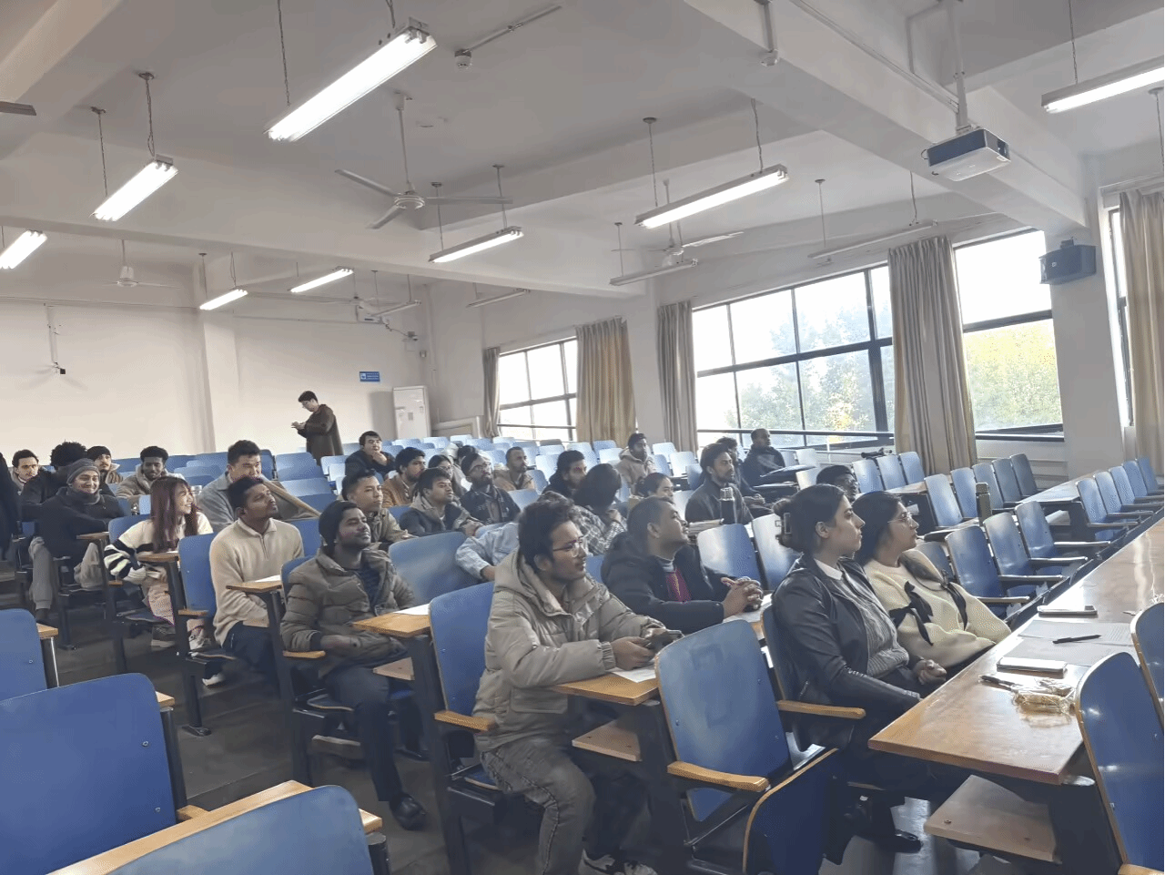 为进一步提升我校来华留员工的专业汉语水平,增进其对中国纺织服饰文化的理解,近日,皇冠体体育官网周丹教授为纺织工程专业的留员工们带来了一场题为《解码语言的经纬》(Decoding the Fabric of Language)的精彩讲座。讲座以“纺织汉语”为切入点,通过生动的双语教学与沉浸式互动,带领留员工们开启了一段探寻中华文明“经纬”的文化之旅。