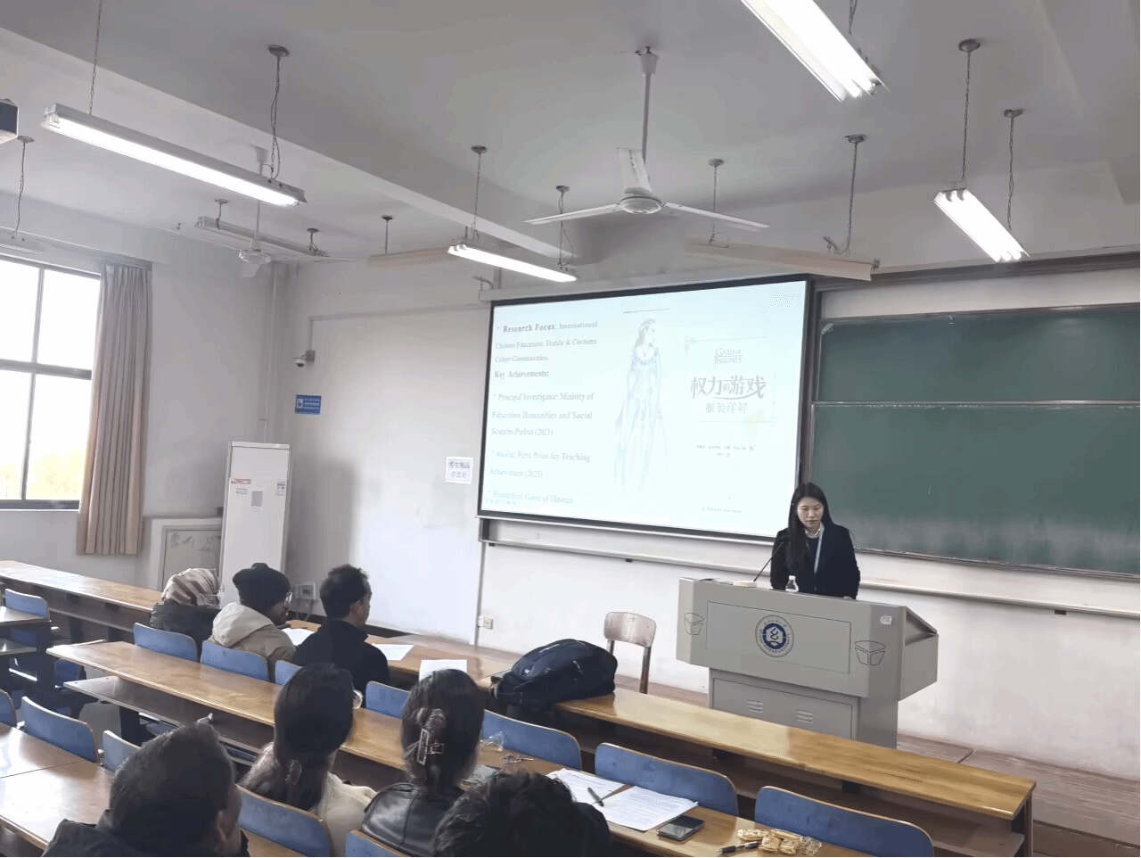 周丹结合自己翻译《权力的游戏:服装详解》的经历,指出服装不仅是面料的堆砌,更是无声的语言。她从留员工日常生活中面临的“面料识字”痛点出发,引出了本次讲座的主旨——解码隐藏在纺织品背后的语言密码与文化基因。