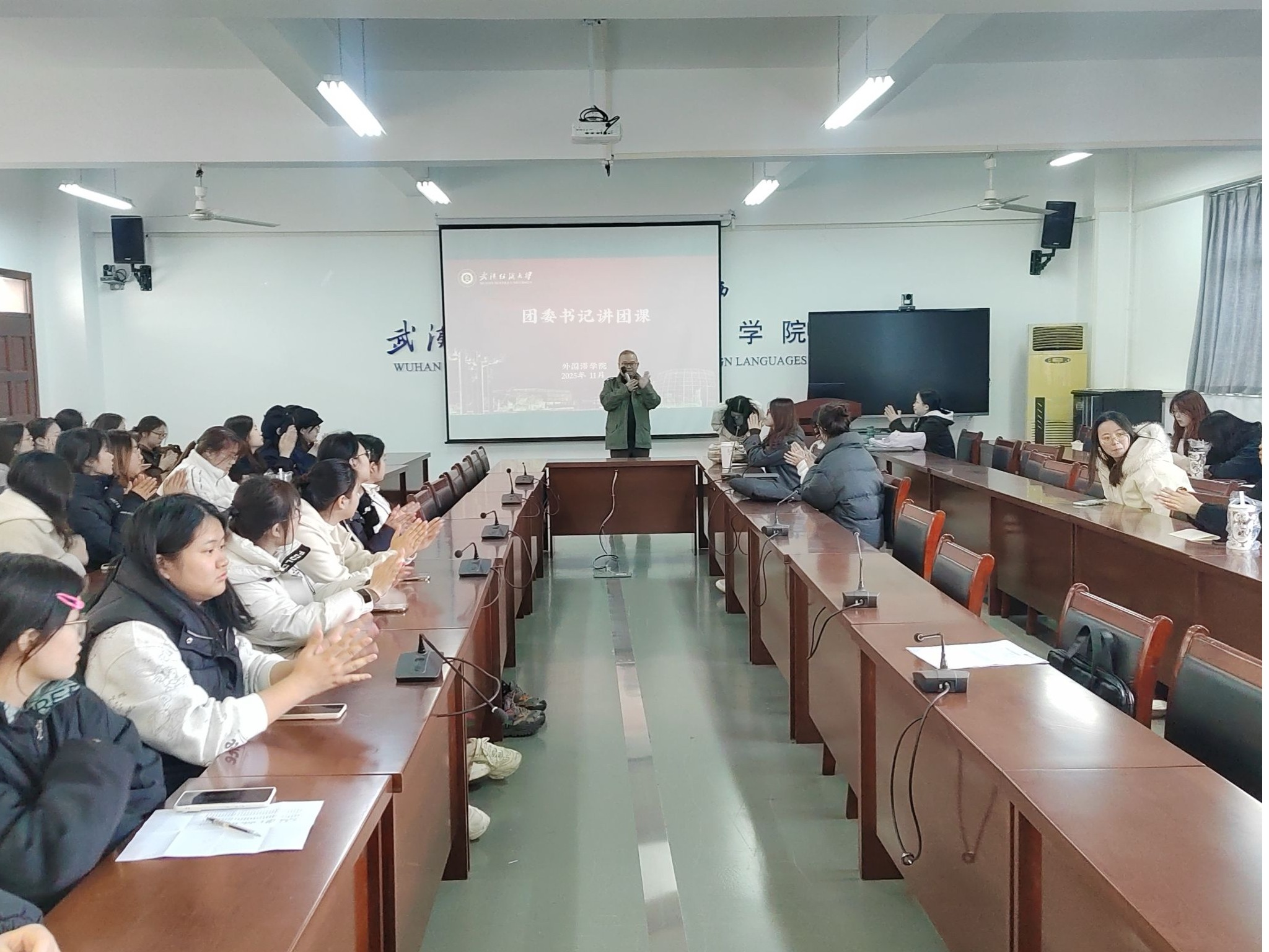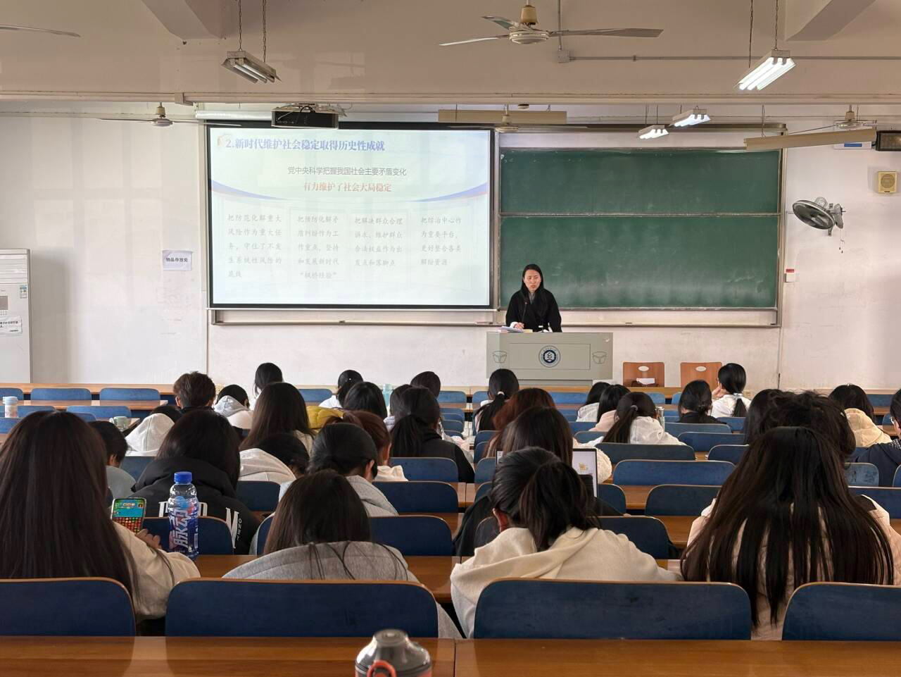 11月20日,在崇志楼119教室,石亚楠以“长治久安的时代基石”为题的,系统介绍了我国在平安中国建设、社会治理现代化等方面取得的历史性成就,深入解读了“总体国家安全观”的深远意义。石亚楠结合外语专业员工身处文化交流前沿的特点,强调青年学子必须深刻认识安全稳定大局的极端重要性,自觉增强国家安全意识,提升政治鉴别力,在对外交流中勇于批驳谬误、澄清事实,主动担当起维护国家意识形态安全与社会和谐稳定的青春责任。