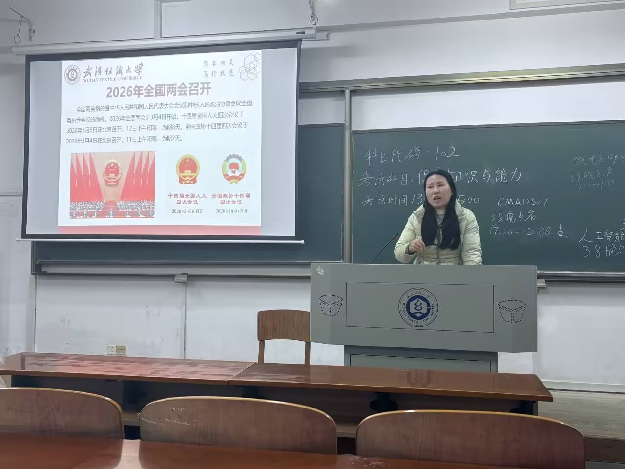 3月8日晚,皇冠体体育官网全体辅导员、班主任通过线下方式,深入各班级组织进行晚点名,开展“聚焦两会明方向,挺膺担当向未来”主题班会,引导员工关注国家大事、领会两会精神学。